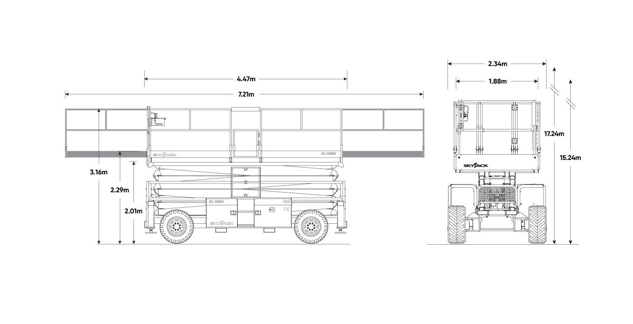 SJ 9250 RT este echipat cu două secțiuni ale platformei de lucru extensibile, fiecare cu lungimea de 1,53 m. În mod standard, oferă o înălțime de lucru de 17,24 m și poate urca o pantă de 30%. Funcțiile de deplasare a liftului funcționează cu platforma ridicată la înălțime maximă, cu secțiunile de extensie complet extinse. Modelul este echipat cu stabilizatoare automate independente, pentru a nivela platforma complet ridicată. Motor diesel Kubota eficient capabil să funcționeze cu combustibil dublu (diesel + gaz natural) antrenează un sistem robust de tracțiune integrală cu diferențiale de alunecare limitată.